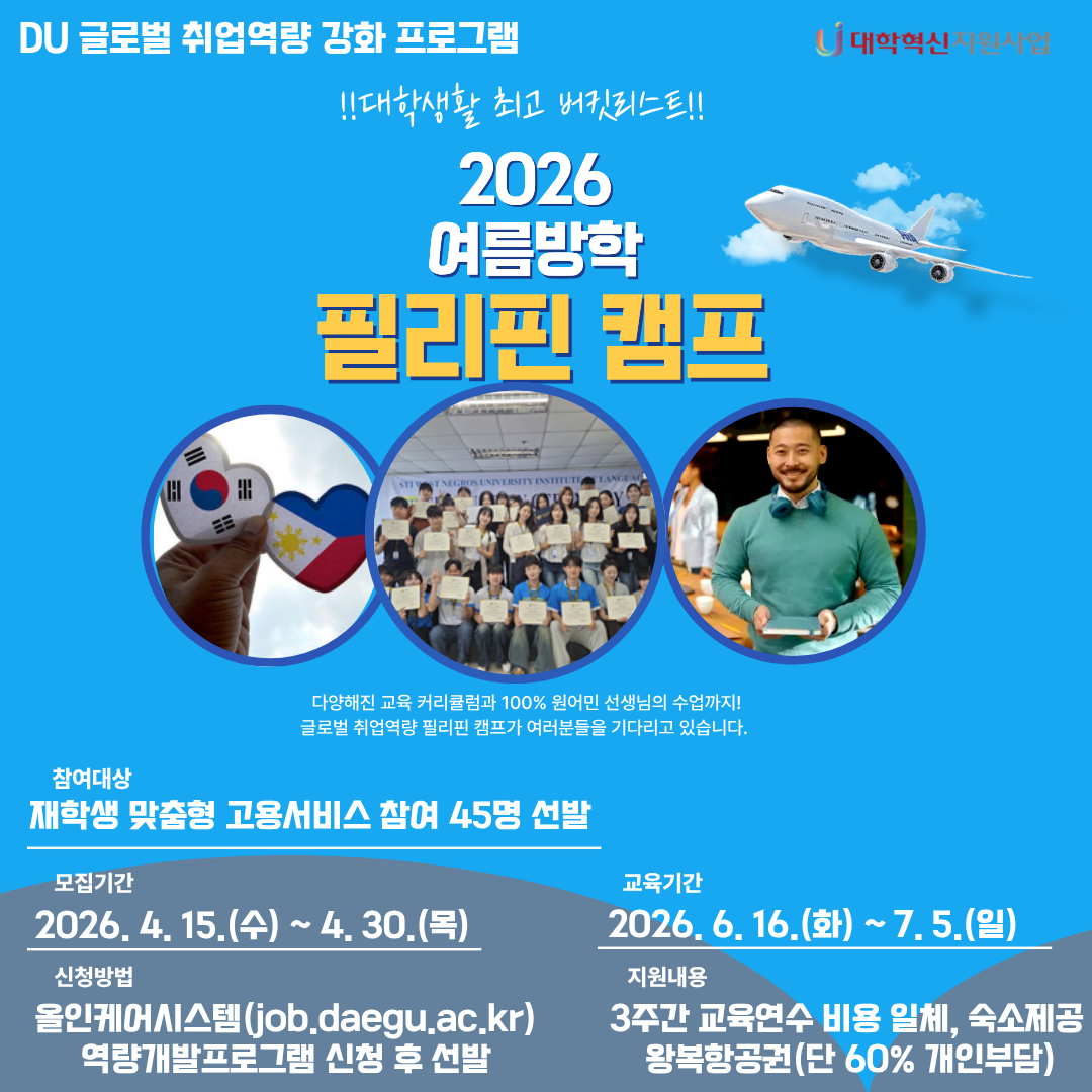 프로그램명 : 글로벌 취업역량강화 필리핀 연수 프로그램 참여자 모집