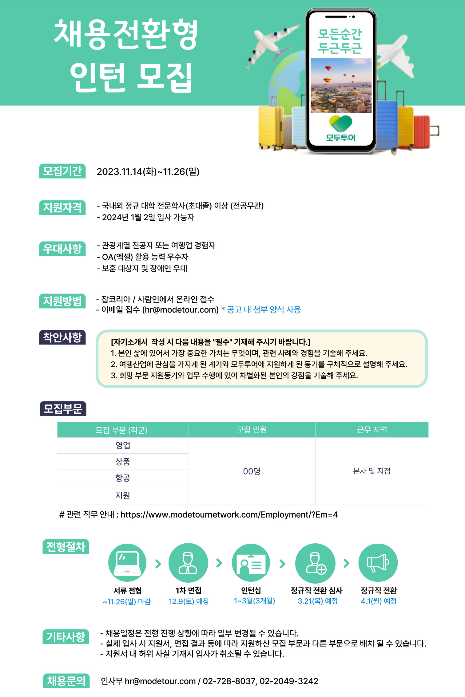 (주)모두투어네트워크 2023년 인턴사원 채용 공고