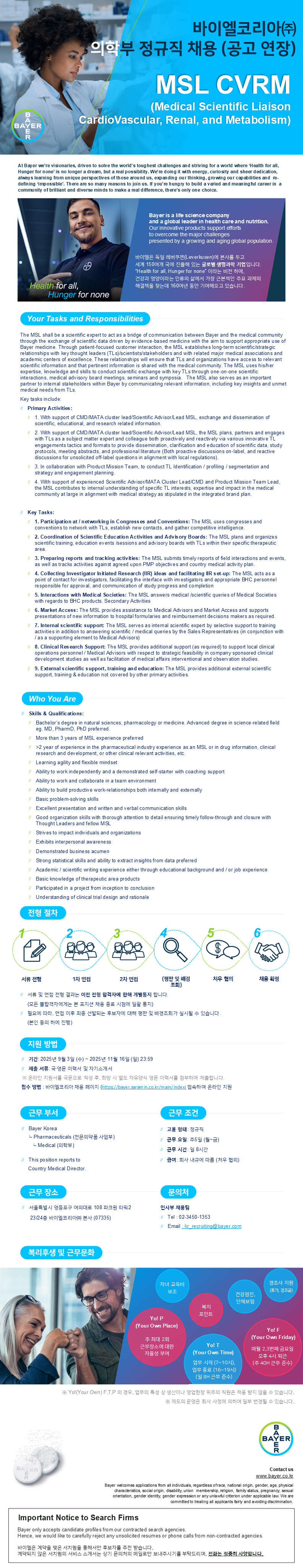 바이엘코리아(주) 의학부 정규직 채용공고(연장) | |||