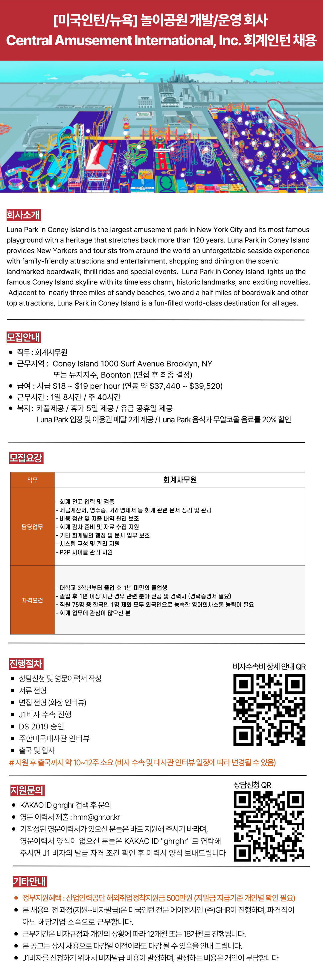 | 미국인턴/뉴욕 놀이공원 개발 운영 회사 회계인턴 채용공고 | |||