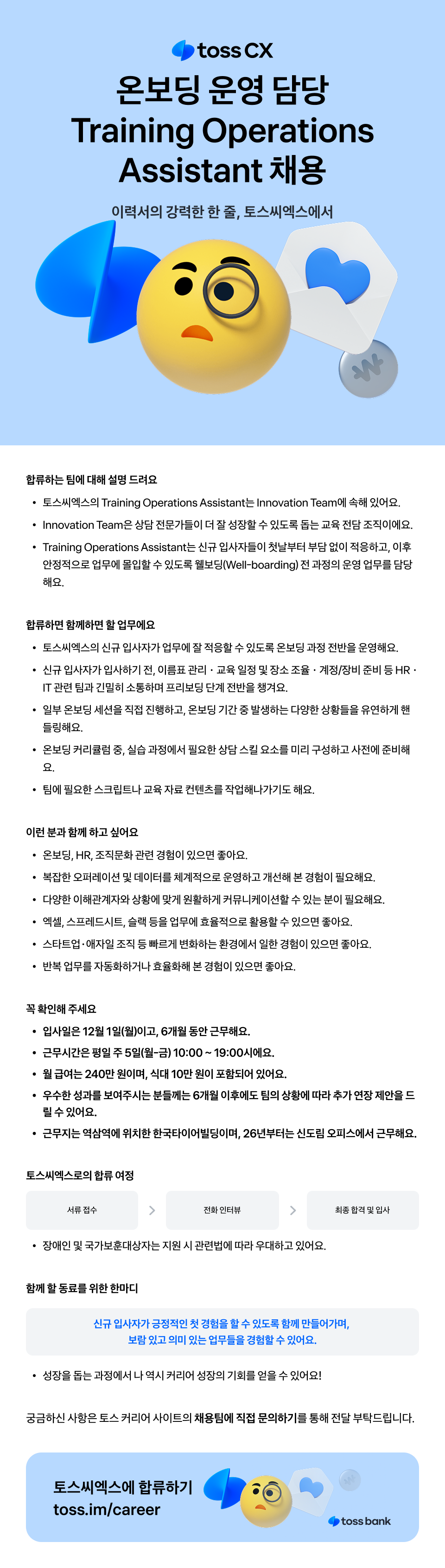 | 토스씨엑스 온보딩 운영 담당 채용공고 | |||