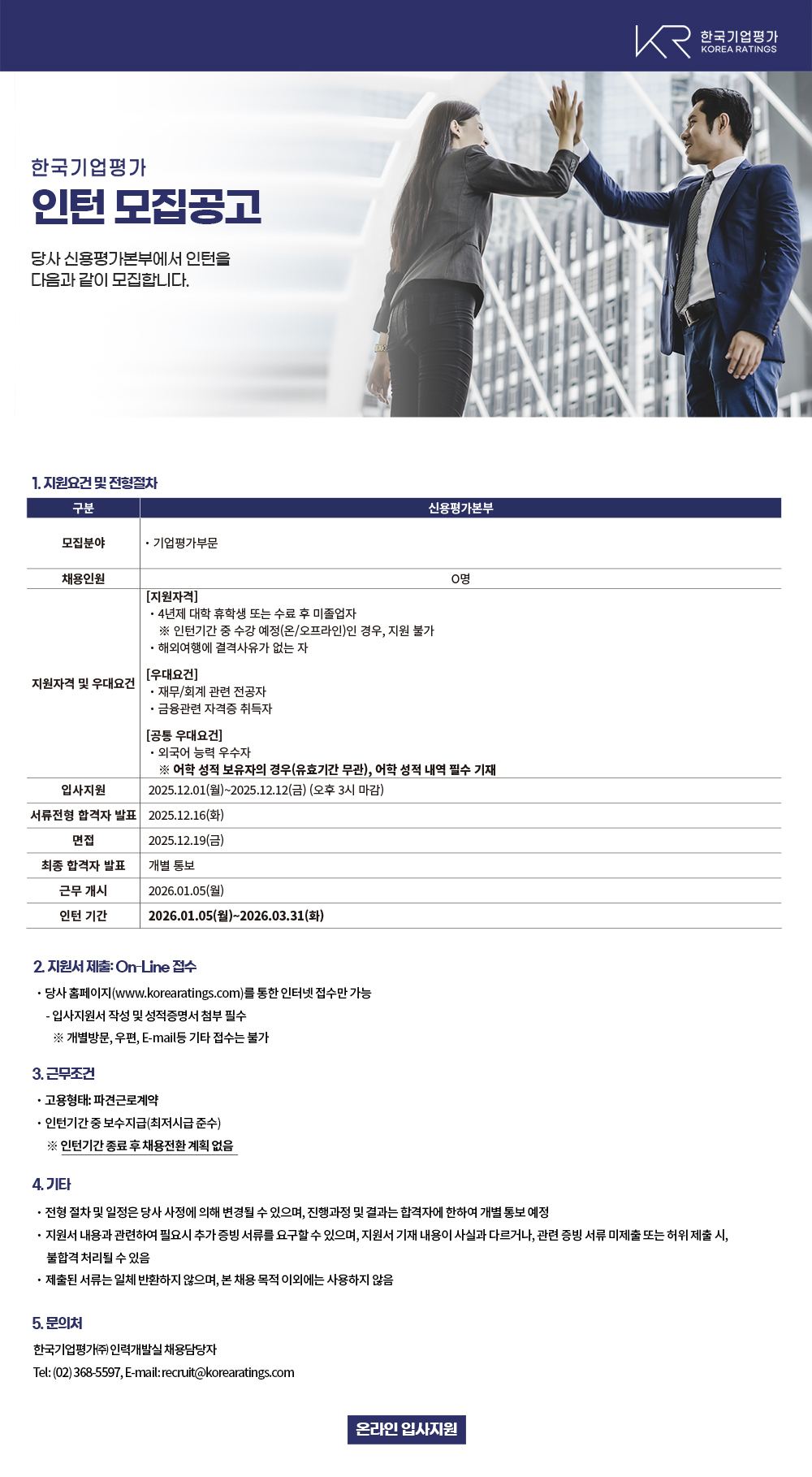 | 채용형태 | 인턴 | 모집기간 | 2025-12-01 ~ 2025-12-12 |