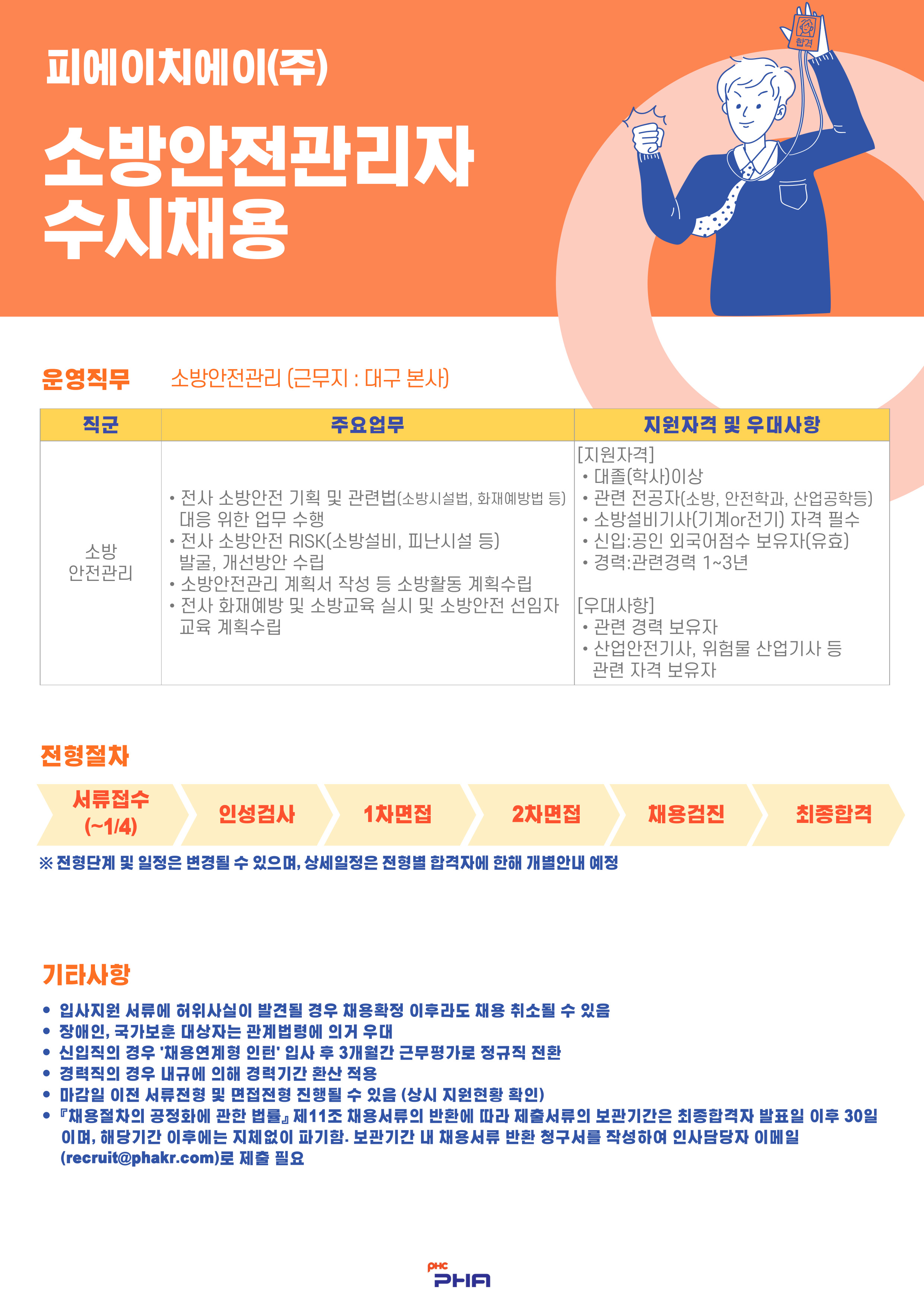 | 피에이치에이(주) 소방안전관리자 채용공고 | ||||
