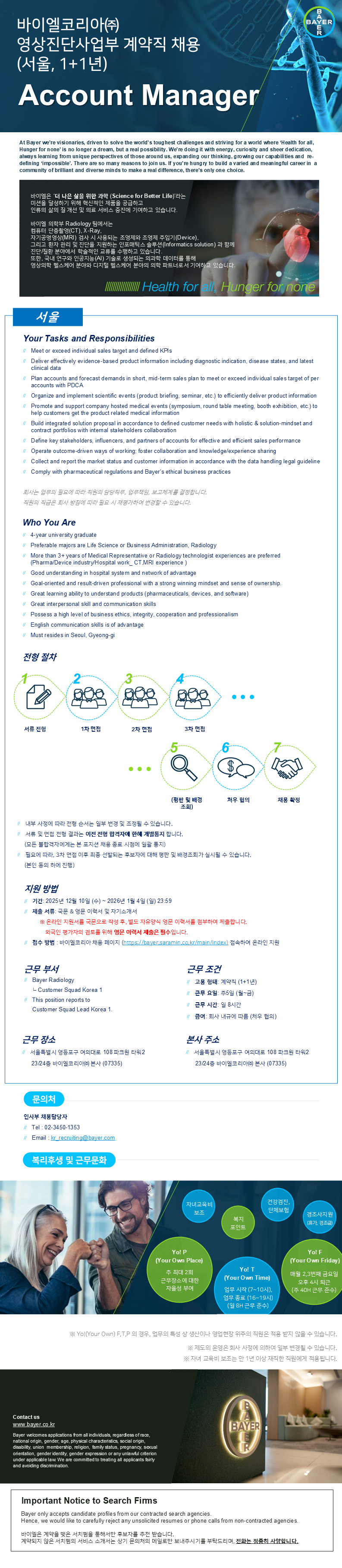| 바이엘코리아(주) 영상진단사업부 계약직 채용공고 | |||