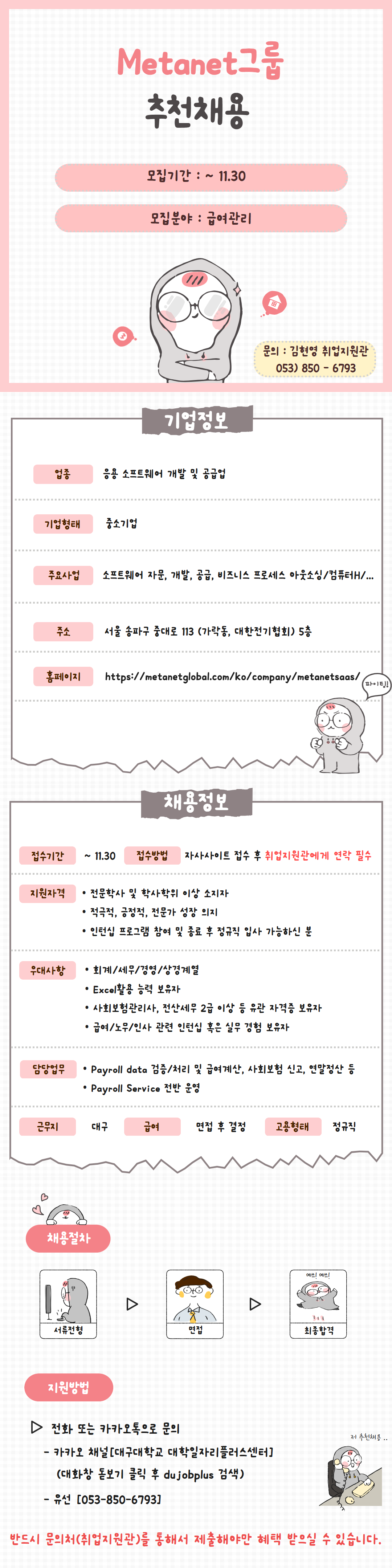 | [추천채용] Metanet 그룹 2025 신입사원 채용공고 | ||||||