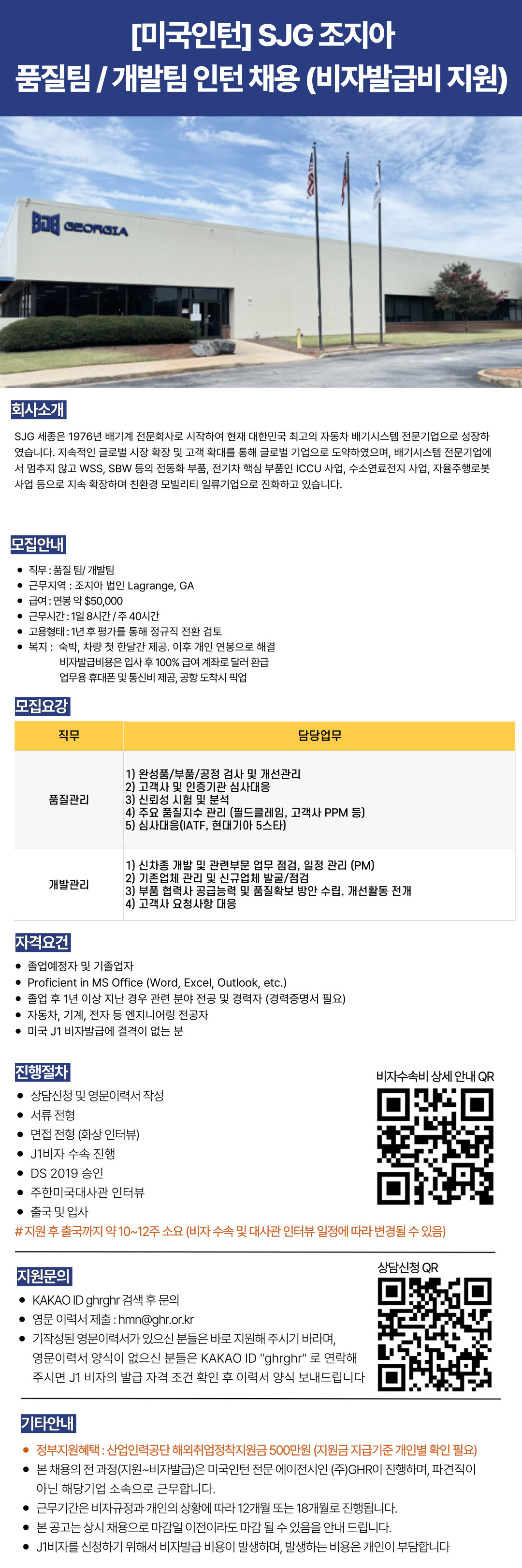 | 미국인턴 SJG조지아 품질팀/개발팀 인턴 채용공고 | |||